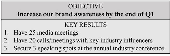 KEY RESULTS consider the ‘HOW’. Good KRs are specific, time-bound, aggressive, and realistic. Ultimately, they are measurable and verifiable, you either meet the requirements of the KR or you don’t.