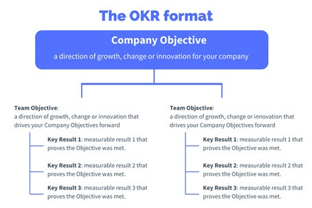 A key aspect of the OKR Method is that they can be produced at different level of an organization – at the companywide level, departmental level, and at the individual team level. These are then all linked together towards the overarching corporate strategy.