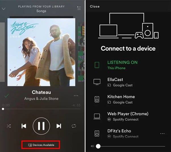 The feature that blew me away the most was the ability to listen with Spotify on multiple devices. One moment I can be listening on my desktop and have to go somewhere and continuing listening to the song on the Spotify android app.