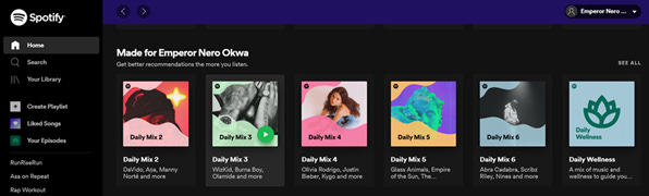Another cool feature is based on the songs you listen to and like, Spotify uses machine learning to create customized playlists. These playlists are a mixture of songs you already listen to and completely new songs.